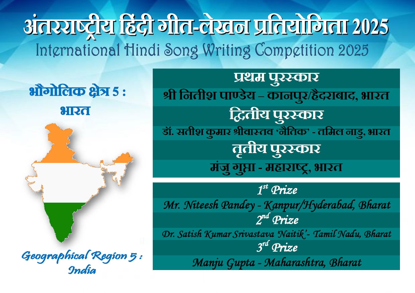 अंतर्राष्ट्रीय हिंदी गीत लेखन प्रतियोगिता 2005- परिणाम