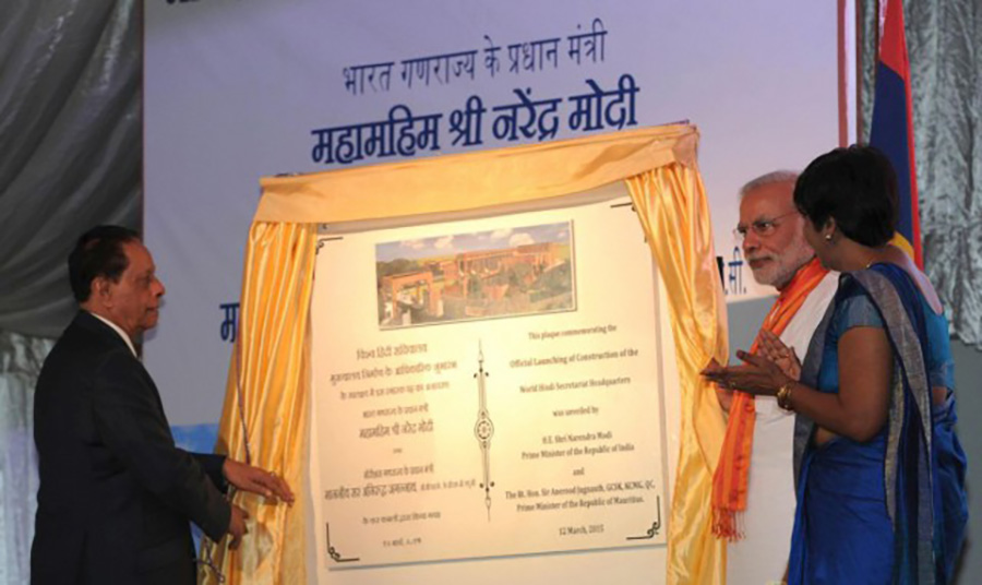 12 मार्च, 2015 को फ़ेनिक्स में भारत गणराज्य के प्रधान मंत्री, महामहिम श्री नरेन्द्र मोदी तथा मॉरीशस गणराज्य के प्रधान मंत्री, माननीय सर अनिरुद्ध जगन्नाथ, जी.सी.एस.के. के.सी.एम.जी., क्यू.सी. के हाथों विश्व हिंदी सचिवालय मुख्यालय निर्माण का आधिकारिक शुभारंभ किया गया। अवसर पर दोनों प्रधान मंत्रियों द्वारा मॉरीशस की शिक्षा व मानव संसाधन, तृतीयक शिक्षा व वैज्ञानिक अनुसंधान मंत्री, माननीया श्रीमती लीला-देवी दुखन-लछुमन की उपस्थिति में एक स्मारक पट्ट का अनावरण किया गया।
